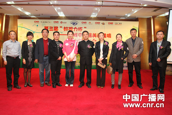 3月30日,第三屆“好視力杯”——尋找中國最美的眼睛活動(dòng)在北京啟動(dòng)。中央人民廣播電臺副臺長(cháng)王曉暉、中國廣播網(wǎng)總裁趙連軍、央廣都市文化傳媒有限公司總經(jīng)理孟昕以及奧運冠軍杜麗等出席活動(dòng)儀式。 中廣網(wǎng)記者涂傲 攝