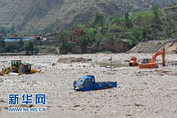這是舟曲縣被泥石流淹沒(méi)的機械設備和車(chē)輛(8月8日攝)。 8月7日22時(shí)許,甘南藏族自治州舟曲縣突降強降雨,縣城北面的羅家峪、三眼峪泥石流下泄,由北向南沖向縣城,造成沿河房屋被沖毀,泥石流阻斷白龍江、形成堰塞湖。截至當日16時(shí)統計,泥石流災害已造成127人死亡,76人受傷,近2000人失蹤,緊急轉移安置4.5萬(wàn)人,倒塌房屋120余戶(hù)300余間。新華社發(fā)