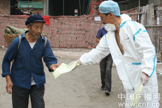 衛生人員發(fā)放宣傳傳單。(中廣網(wǎng)記者陳鐘 攝)