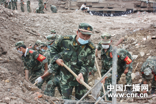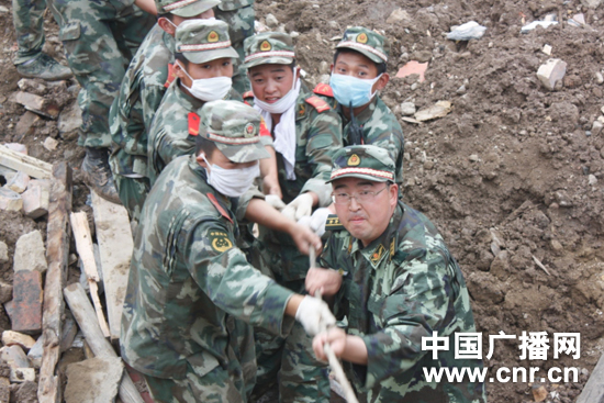 在戰士心中,何政委就是一面旗幟。在他的帶動(dòng)下,戰士們干勁十足,截止12日,支隊搶險官兵共搶救幸存者37人,救治運送傷員158人,搶挖資金89萬(wàn)余元,清理倒塌房屋57間,疏通道路1000米,挖掘土石2000立方米。