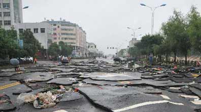 洪水讓余江縣城道路受損嚴重