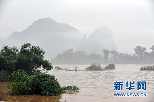6月17日,漓江邊上的農田已成澤國。新華社記者 陳瑞華 攝