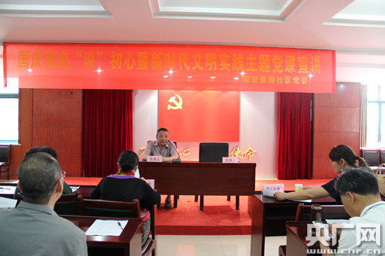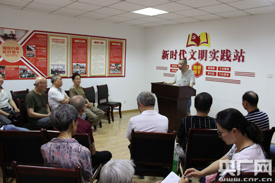 “1949年10月1日,中華人民共和國成立,今年正好是建國70周年……”8月13日上午,家家景園社區活動(dòng)室里,53歲的唐國慶正在給社區群眾說(shuō)黨史。唐國慶是一名社區居民黨員,自幼愛(ài)研究黨史、軍史,能將一個(gè)個(gè)黨的歷史故事說(shuō)得生動(dòng)鮮活,深受聽(tīng)眾好評。