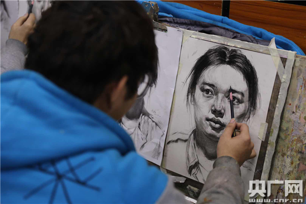 即將參加藝考的美術(shù)生正在練習人物素描
