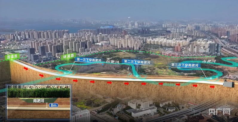 合肥機場(chǎng)S1線(xiàn)先行段三穿南淝河示意圖(央廣網(wǎng)發(fā) 安徽建工路橋供圖)