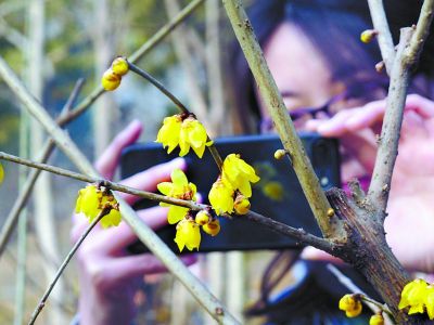 現場(chǎng):今年蠟梅比去年開(kāi)得早些,預計下周能進(jìn)入盛花期,并持續到3月中下旬。
