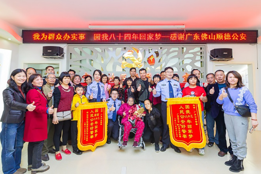 此后,包括馬宏聲在內的佛山順德公安民警一直關(guān)注這個(gè)特殊的個(gè)案,并通過(guò)志愿者與馮鳳英和家人保持聯(lián)系,與社會(huì )多方協(xié)作,設法為這位八旬老人尋親圓夢(mèng)。