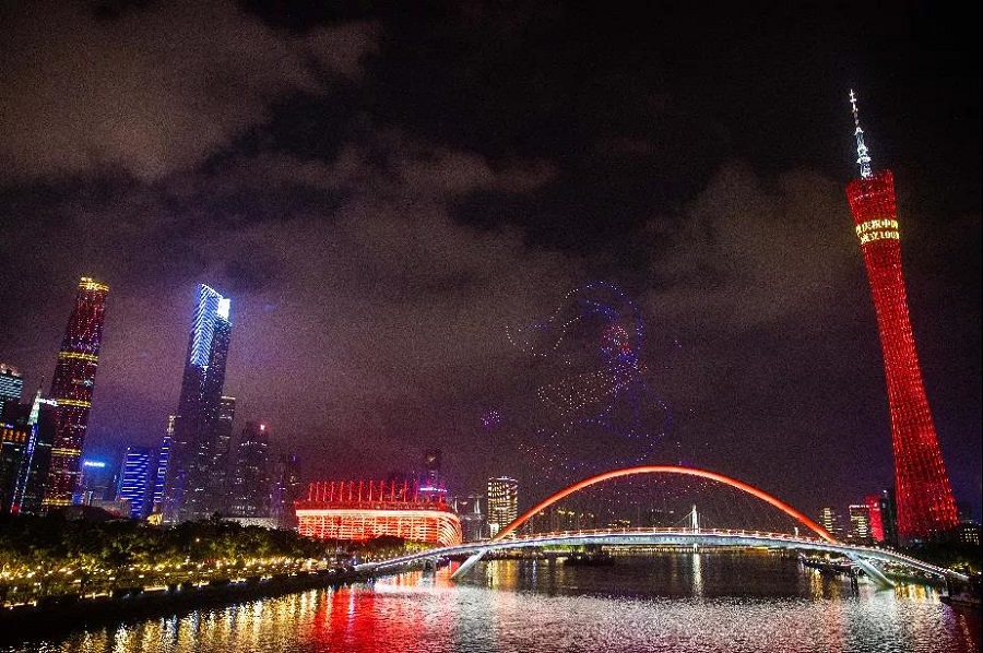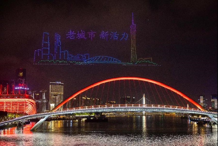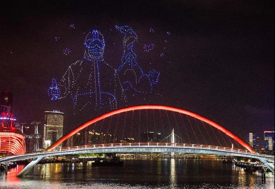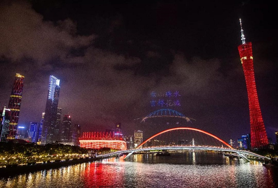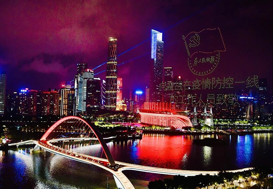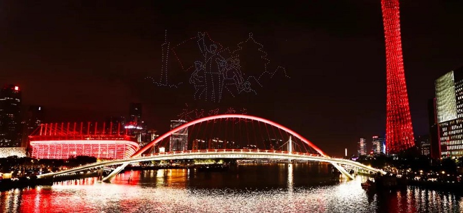 無(wú)人機編隊飛行宛如珠江水上的夜明珠