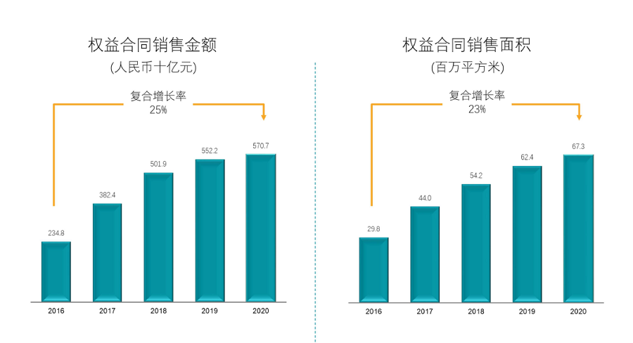 在第三方機構的統計中,碧桂園仍保持全口徑銷(xiāo)售額行業(yè)第一的領(lǐng)先地位。統計顯示,2016年至2020年期間,公司權益合同銷(xiāo)售金額復合增長(cháng)率達到25%。