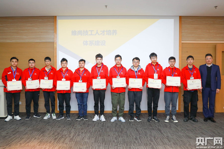 維尚向到訪(fǎng)的年輕工匠們頒發(fā)“高級技術(shù)顧問(wèn)”聘書(shū)(央廣網(wǎng)發(fā))