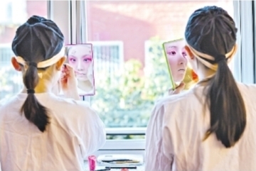 參與漢劇名家名段演唱會(huì )的演員演出前化妝。