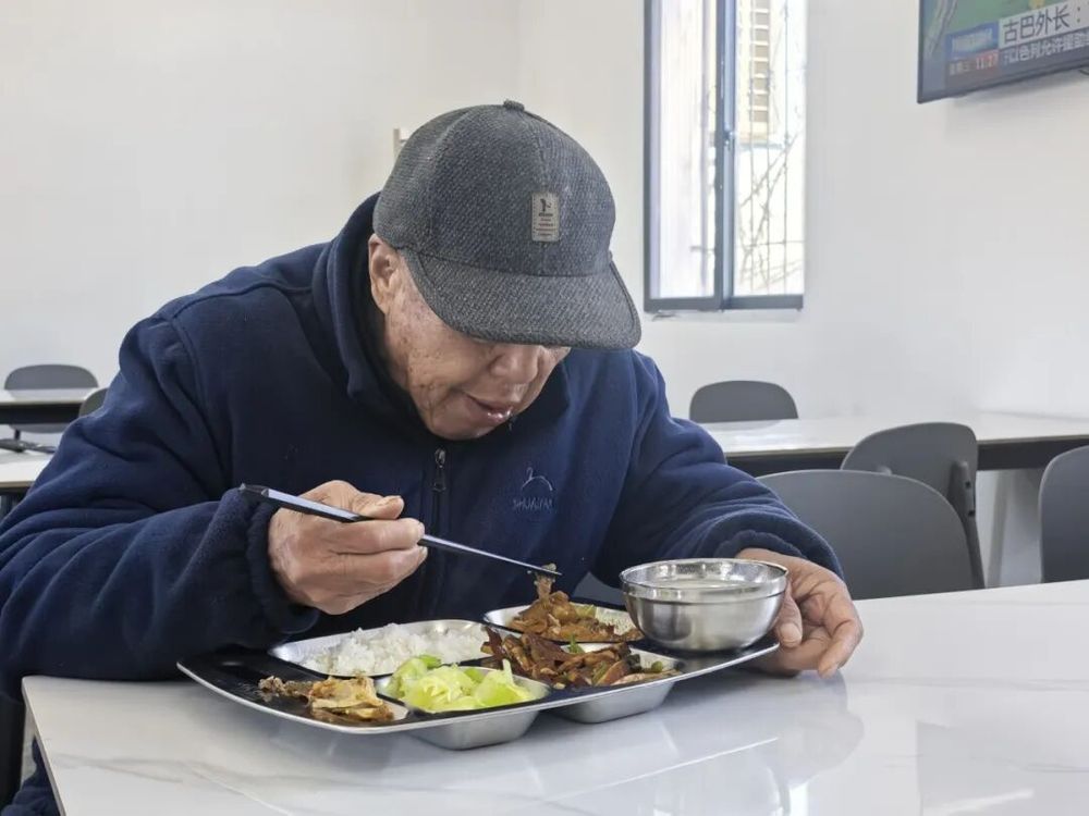 當天上午,陽(yáng)光灑滿(mǎn)新改造的“互助小院”,老人們端著(zhù)餐盤(pán)有序排隊就餐,三菜一湯,熱氣騰騰,臉上的笑容藏都藏不住。