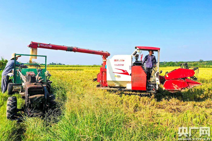 圖為:農民收割水稻 央廣網(wǎng)發(fā) 通訊員供圖