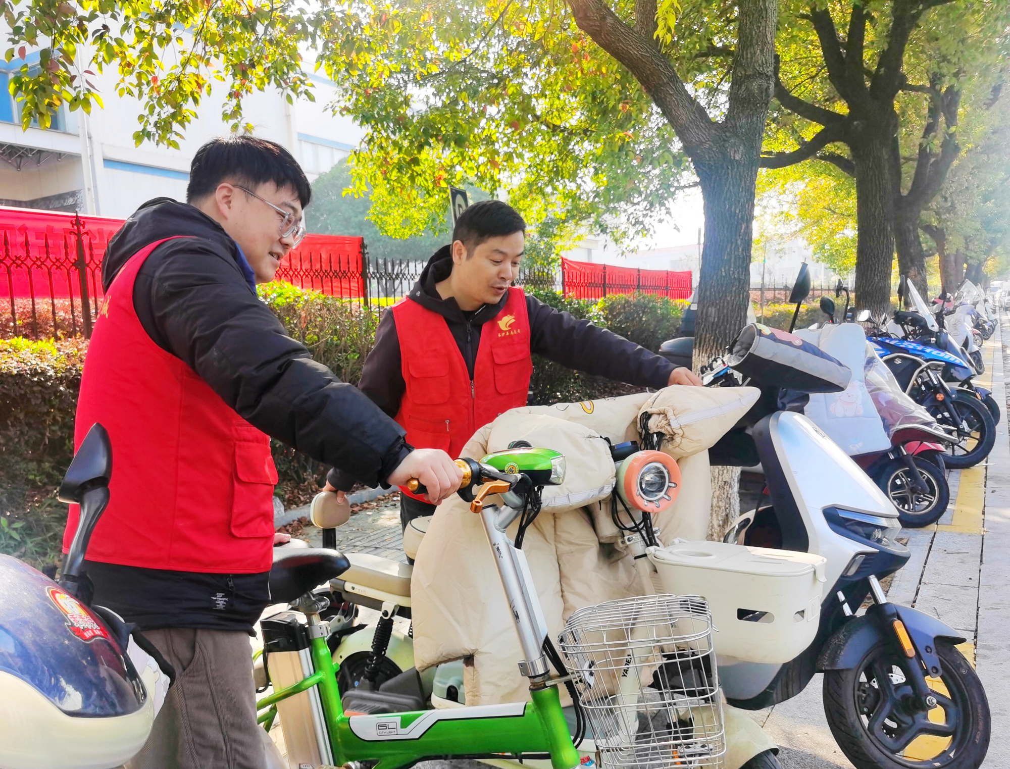 向星社區網(wǎng)格員在維勝科技西門(mén)開(kāi)展常態(tài)化巡查,規范電動(dòng)車(chē)停放(栗穩 攝)