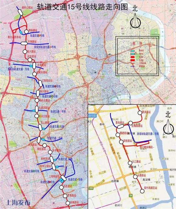 15號線(xiàn)工程自顧村公園站至紫竹園區站,全長(cháng)39.8公里,車(chē)站30座。目前已開(kāi)工車(chē)站14座。