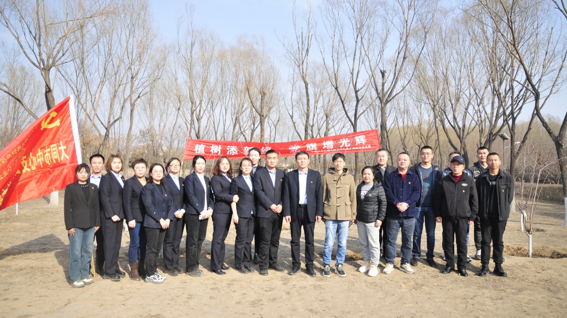 在相互協(xié)作、緊密配合下,一株株樹(shù)苗迎風(fēng)挺立,生機勃勃,孕育著(zhù)綠的希望。
