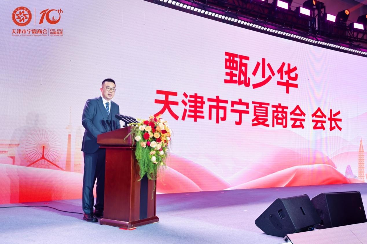 天津市寧夏商會(huì )會(huì )長(cháng)甄少華在致辭中深情回顧了商會(huì )十年櫛風(fēng)沐雨、砥礪前行的發(fā)展歷程。他表示,商會(huì )始終堅持“黨建引領(lǐng),創(chuàng )新服務(wù)”的宗旨,從最初的鄉情聯(lián)誼平臺,逐步成長(cháng)為在津寧商信賴(lài)的“娘家”和推動(dòng)兩地經(jīng)貿往來(lái)的重要橋梁。站在新十年的起點(diǎn),商會(huì )將繼往開(kāi)來(lái),進(jìn)一步凝聚在津寧商智慧與力量,不斷提升服務(wù)能級,積極融入國家發(fā)展戰略,為會(huì )員企業(yè)創(chuàng )造更大價(jià)值,為天津與寧夏的發(fā)展貢獻更多寧商力量。
