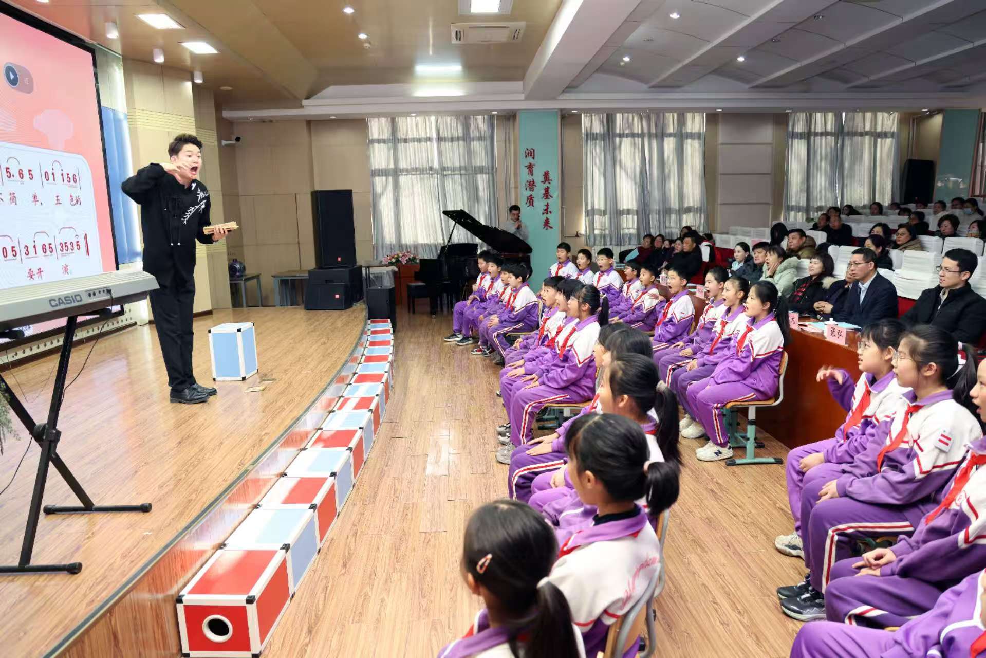美育成果展示環(huán)節中,育嬰里小學(xué)合唱團演繹的《雪花的快樂(lè )》《北方的孩子愛(ài)北方》,以純凈童聲傳遞詩(shī)意與深情;集團師生共同合唱的《送你一朵小紅花》,溫暖而充滿(mǎn)力量,贏(yíng)得全場(chǎng)持久掌聲。這些精彩呈現,正是集團多年來(lái)深耕美育、以美育人的生動(dòng)縮影。