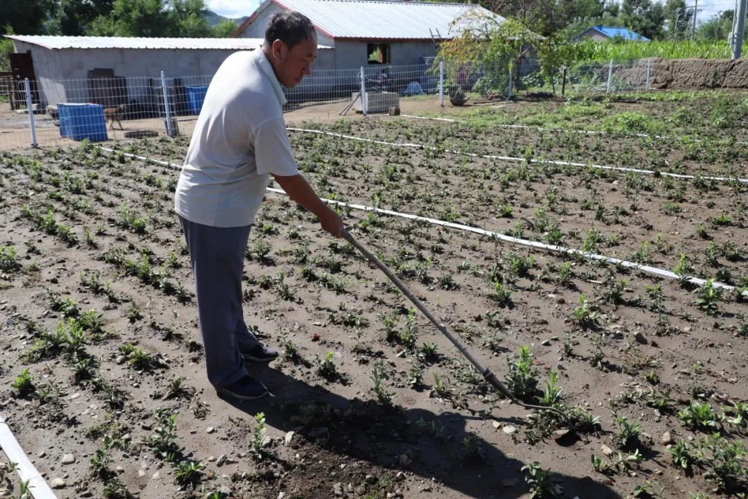 雨后的雜草長(cháng)勢迅捷,劉根柱一絲不茍的一鋤一鋤為蒼術(shù)除草,據悉,他是去年開(kāi)始試種的,別看接觸時(shí)間較短,但他對蒼術(shù)種植已然有了自己的不少見(jiàn)解,有點(diǎn)土專(zhuān)家的架勢?粗(zhù)他的生活狀況很難想象幾年前他還是建檔立卡貧困戶(hù),據了解,劉根柱一家三口,有個(gè)女兒,以前他與老伴都疾病纏身,無(wú)法干重體力活兒,家里既沒(méi)產(chǎn)業(yè),自身也沒(méi)發(fā)展動(dòng)力,生活窮困潦倒。自從2015年被納入精準扶貧貧困戶(hù)后生活狀況才逐漸得以改變,最直接的改變是看病少花錢(qián)了,而且多年的疾病得到治療和調理,隨后的“菜單式”產(chǎn)業(yè)的落實(shí),家里有了穩定的經(jīng)濟來(lái)源,扶貧干部們的耐心勸導更是讓一家重拾發(fā)展的信心,逐漸生活動(dòng)力十足。鄉村干部眼里看著(zhù)劉根柱一家的變化,2019年為加快推進(jìn)當地庭院經(jīng)濟發(fā)展,為他家提供免費蒼術(shù)苗,旨在示范引領(lǐng)!拔壹屹I(mǎi)的扶貧牛從最初的6頭發(fā)展到10頭了,去年和前年各賣(mài)了2頭公牛犢,平均每頭8000元,種的幾畝藥材幾年后又有不菲的收入,我相信只要好好干生活肯定越來(lái)越好!眲⒏判臐M(mǎn)滿(mǎn)的說(shuō)。聽(tīng)他盤(pán)算起收入賬,可以看出他家的生活的確越來(lái)越好了,產(chǎn)業(yè)不僅得到了發(fā)展,難得的是每年又有不菲的收入,但比起產(chǎn)業(yè)和收入的增加,更可貴的是他重拾的信心,只有信心才是戰勝困難的利劍,才是達向理想彼岸的方舟。(烏云巴圖)