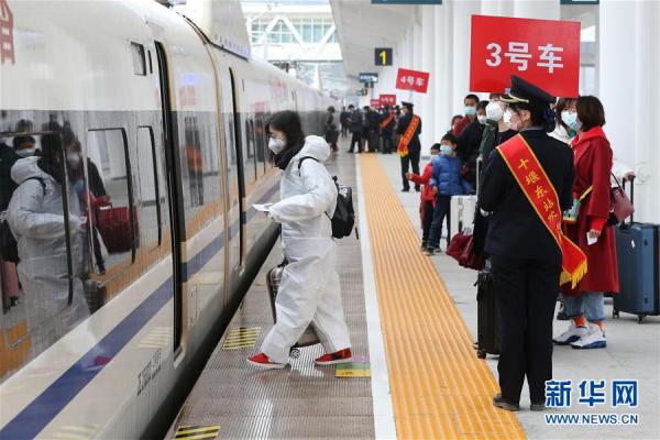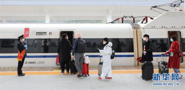 當日,湖北省十堰市193名進(jìn)京務(wù)工人員乘坐G4834次復工專(zhuān)列從十堰東高鐵站出發(fā)。他們和從湖北省襄陽(yáng)市登上本次專(zhuān)列的一批復工人員抵達北京西站后,用人單位將用專(zhuān)車(chē)接回并隔離觀(guān)察14天后方可上崗務(wù)工。