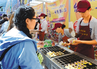 “這次有8家臺灣干貨客商參加藏博會(huì )產(chǎn)品展銷(xiāo),還有17家臺灣夜市攤販業(yè)主帶著(zhù)各色美食亮相藏博會(huì )餐飲街!迸_灣觀(guān)光夜市文化協(xié)會(huì )副會(huì )長(cháng)柯宏騰介紹說(shuō),“在參加完拉薩雪頓節相關(guān)活動(dòng)后,我們挑選了一些受歡迎的精品項目留下來(lái)繼續參加藏博會(huì )!